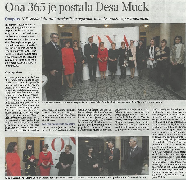 mag. Sabina Sobočan nominirana za ONA 365. V Festivalni dvorani razglasili zmagovalko med dvanajstmi posameznicami.